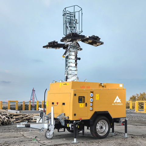 पोर्टेबल डीजल जनरेटर प्रकाश टॉवर मैनुअल मास्ट औद्योगिक आउटडोर लाइट टॉवर